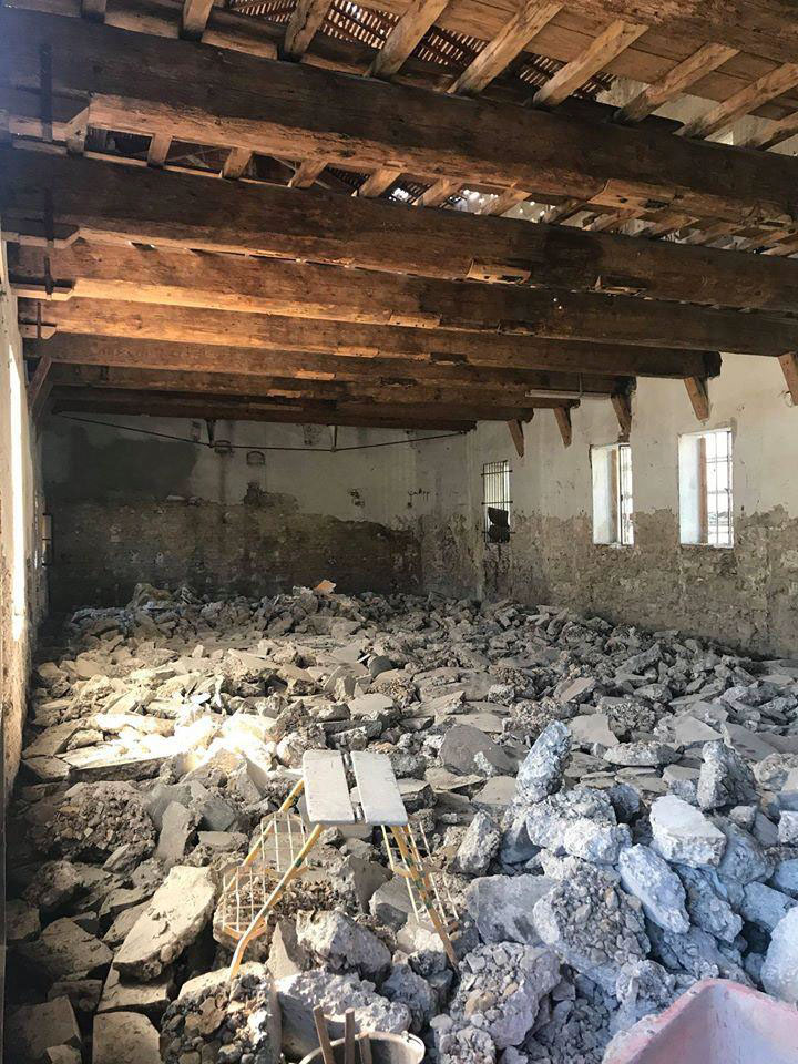 Il faut renforcer les poutres maîtresses du plancher et soutenir le sol du rez-de-chaussée par vingt-cinq micropieux de 7 mètres de profondeur… car, nous devons le préciser, à l’Isle-sur-la-Sorgue, tout comme à Venise, du fait des sédiments abondants et de l’absence de socle rocheux proche, on construit sur pilotis !